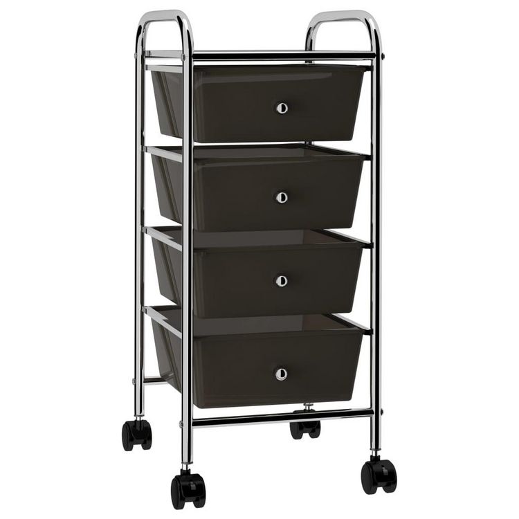 Chariot de rangement mobile a 4 tiroirs Noir Plastique