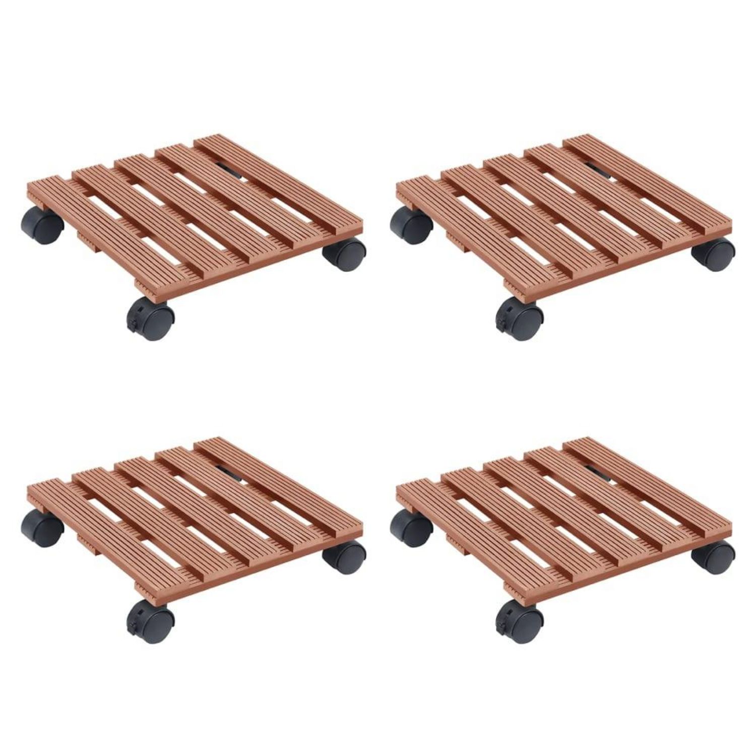 Chariots a plantes 4 pcs Marron 30x30x7,5 cm WPC