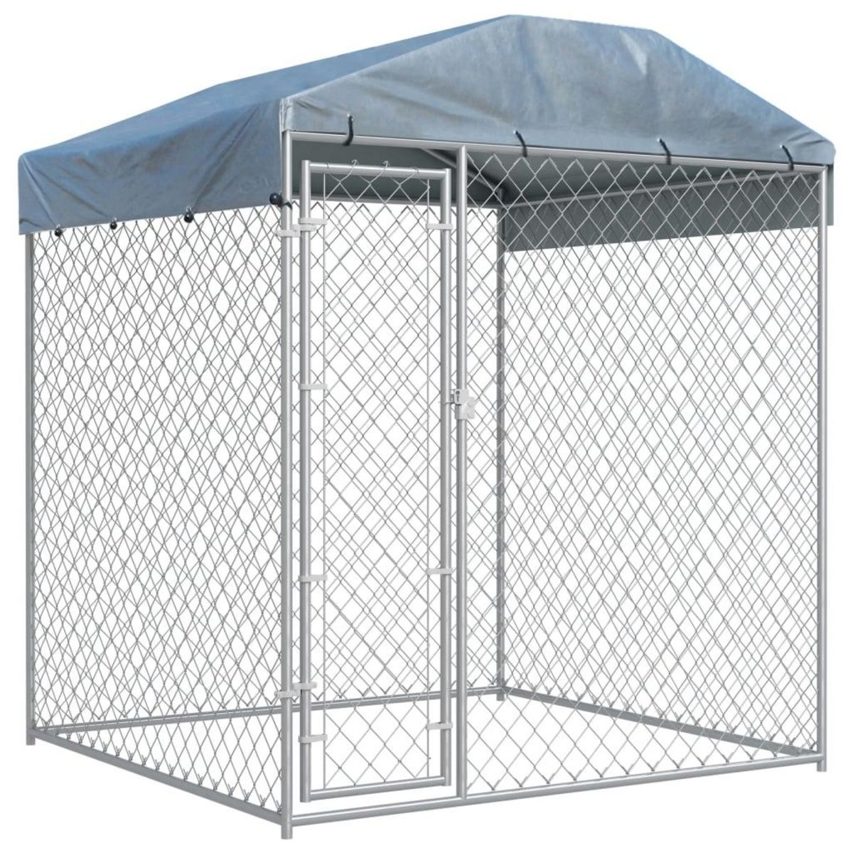 Le chenil est fait d'acier galvanise. L'auvent inclus, fait de 100 % polyethylene, est ignifuge et protege contre les rayons UV, offrant une protection contre le soleil, la pluie, la neige et d'autres conditions meteorologiques.