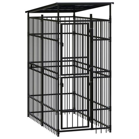 Chenil d'exterieur avec toit pour chiens Acier 1,84 m²
