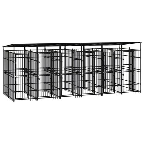 Chenil d'exterieur avec toit pour chiens Acier 11,06 m²