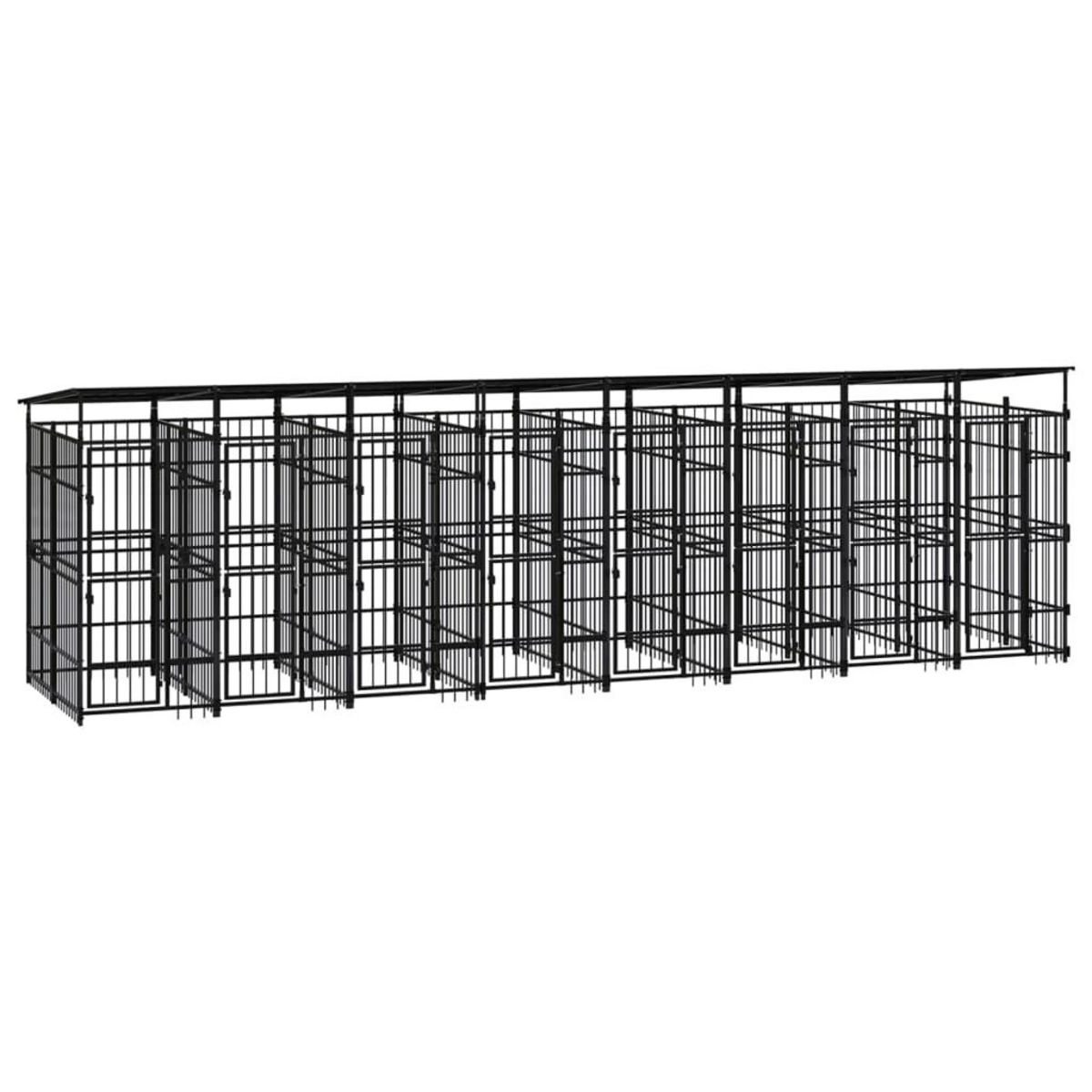 Chenil d'exterieur avec toit pour chiens Acier 14,75 m²