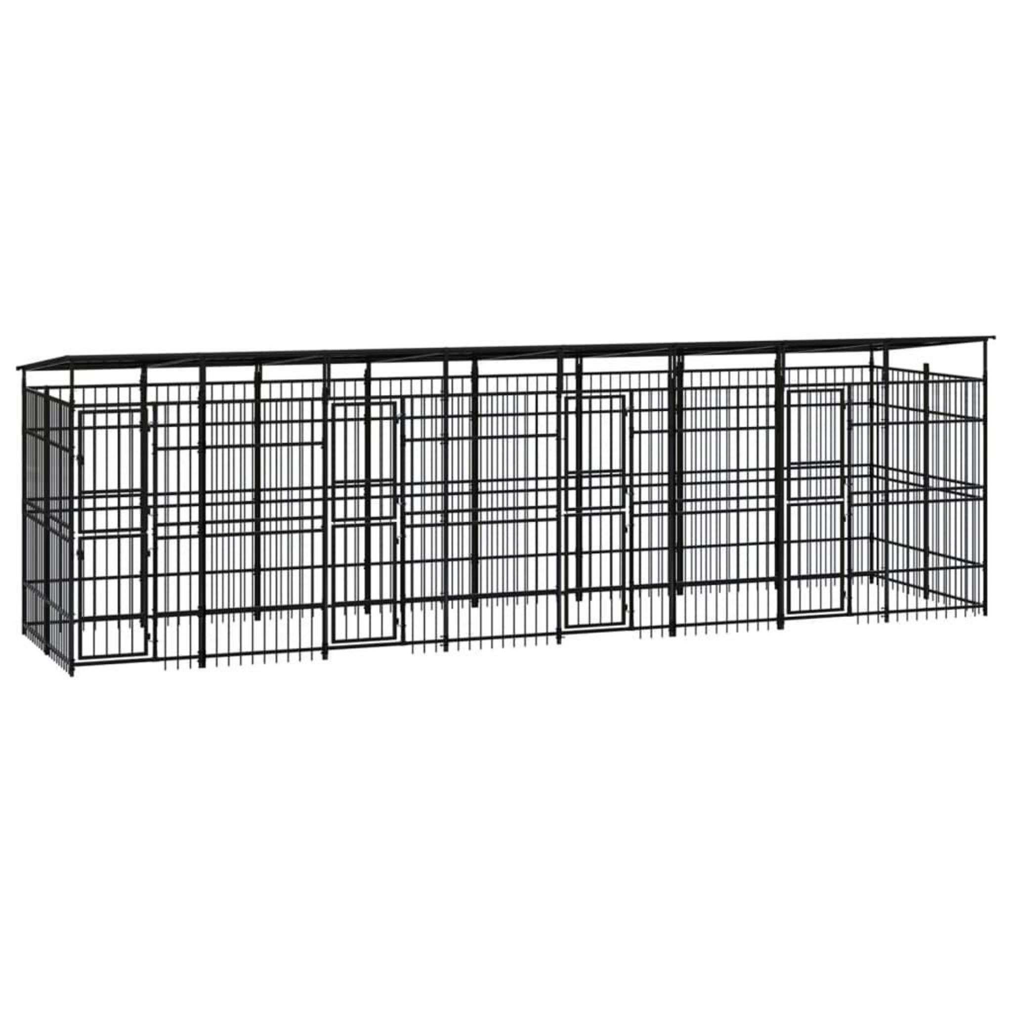 Chenil d'exterieur avec toit pour chiens Acier 14,75 m²