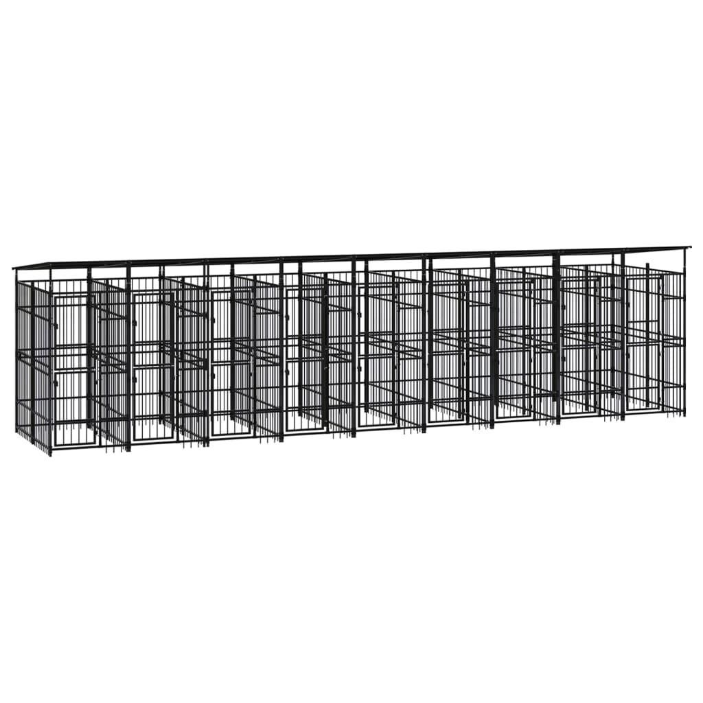 Chenil d'exterieur avec toit pour chiens Acier 16,59 m²