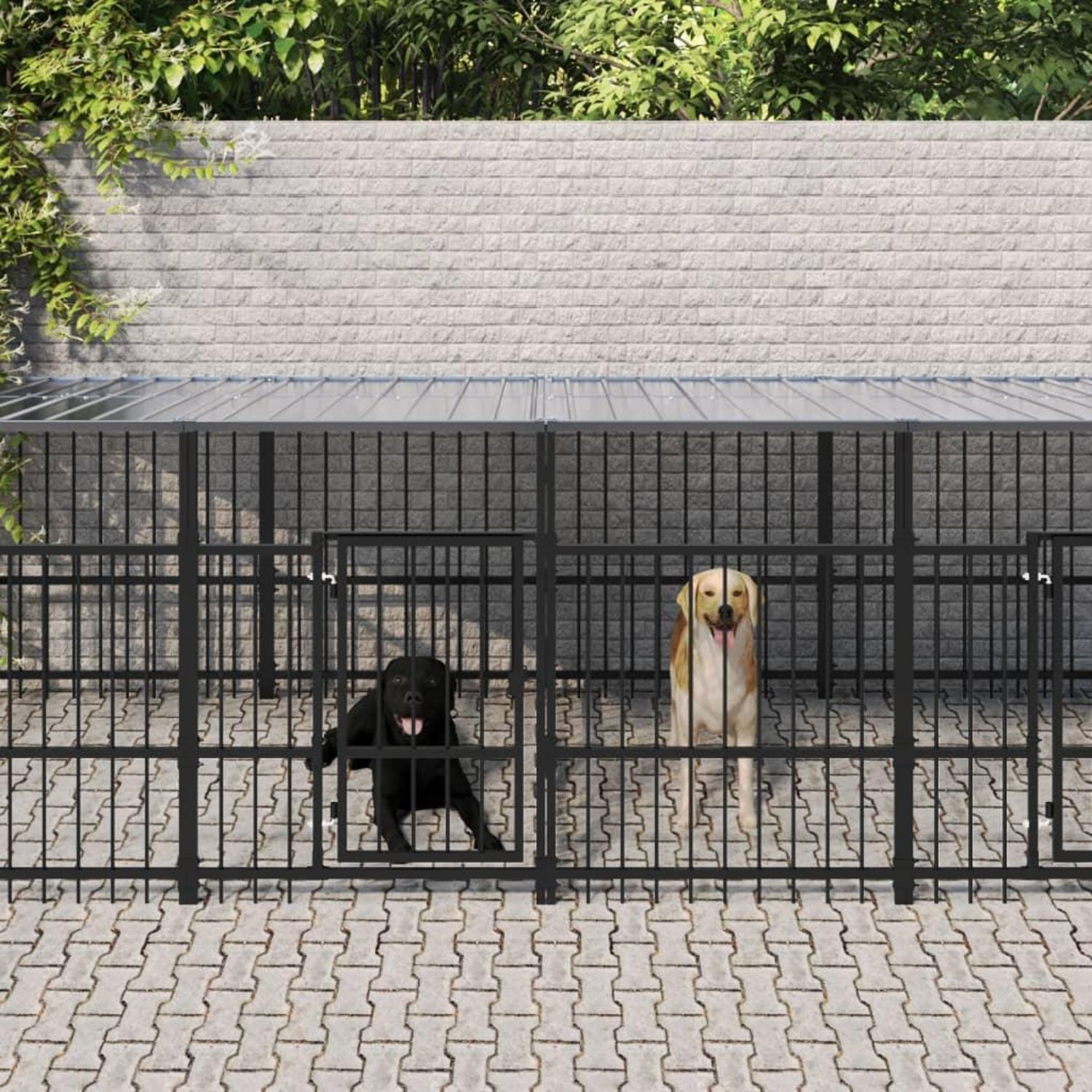 Chenil d'exterieur avec toit pour chiens Acier 18,77 m²