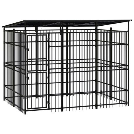 Chenil d'exterieur avec toit pour chiens Acier 5,53 m²