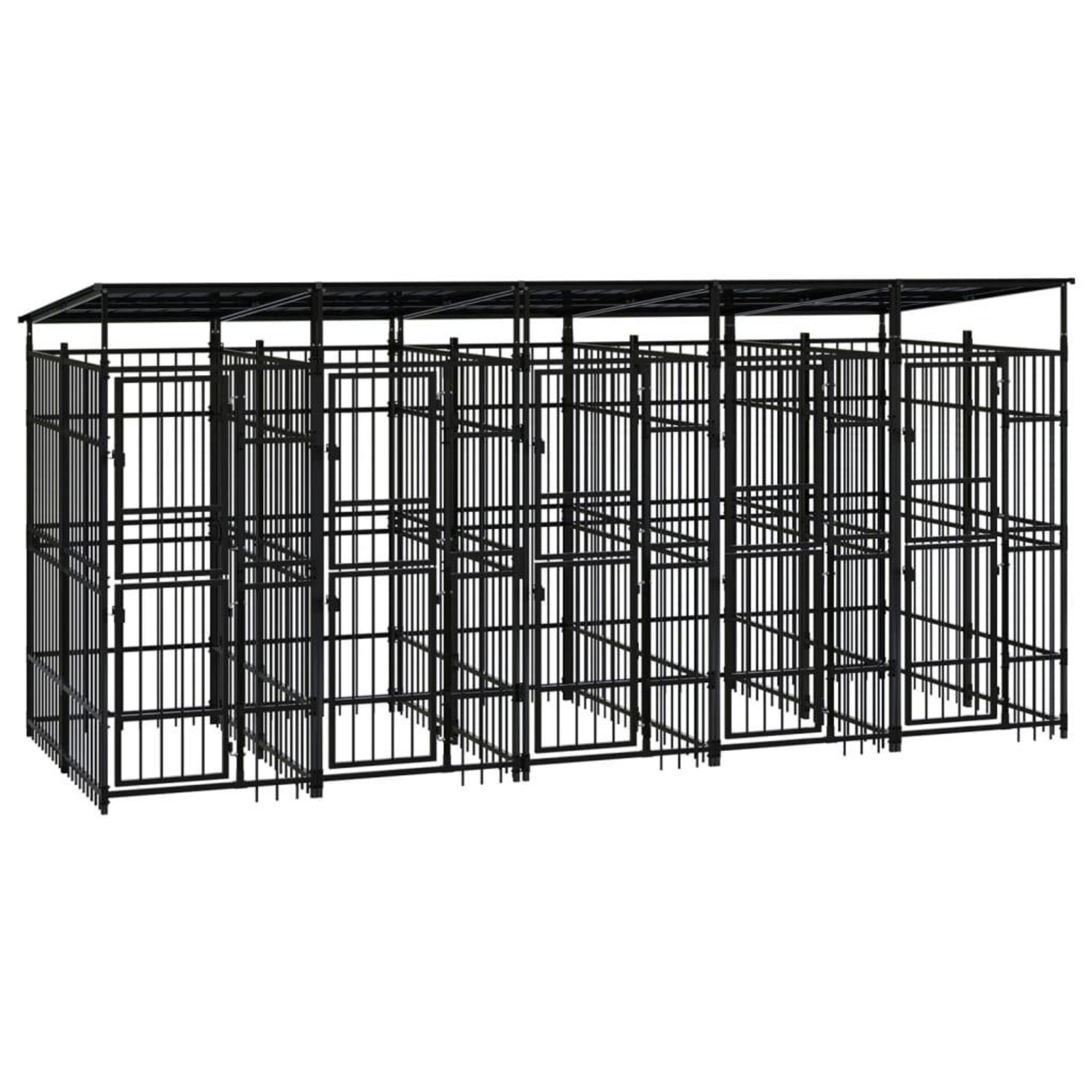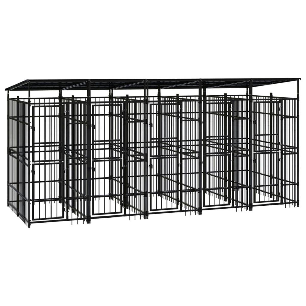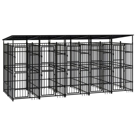 Chenil d'exterieur avec toit pour chiens Acier 9,22 m²