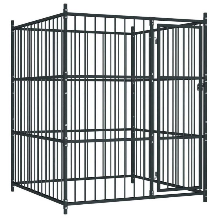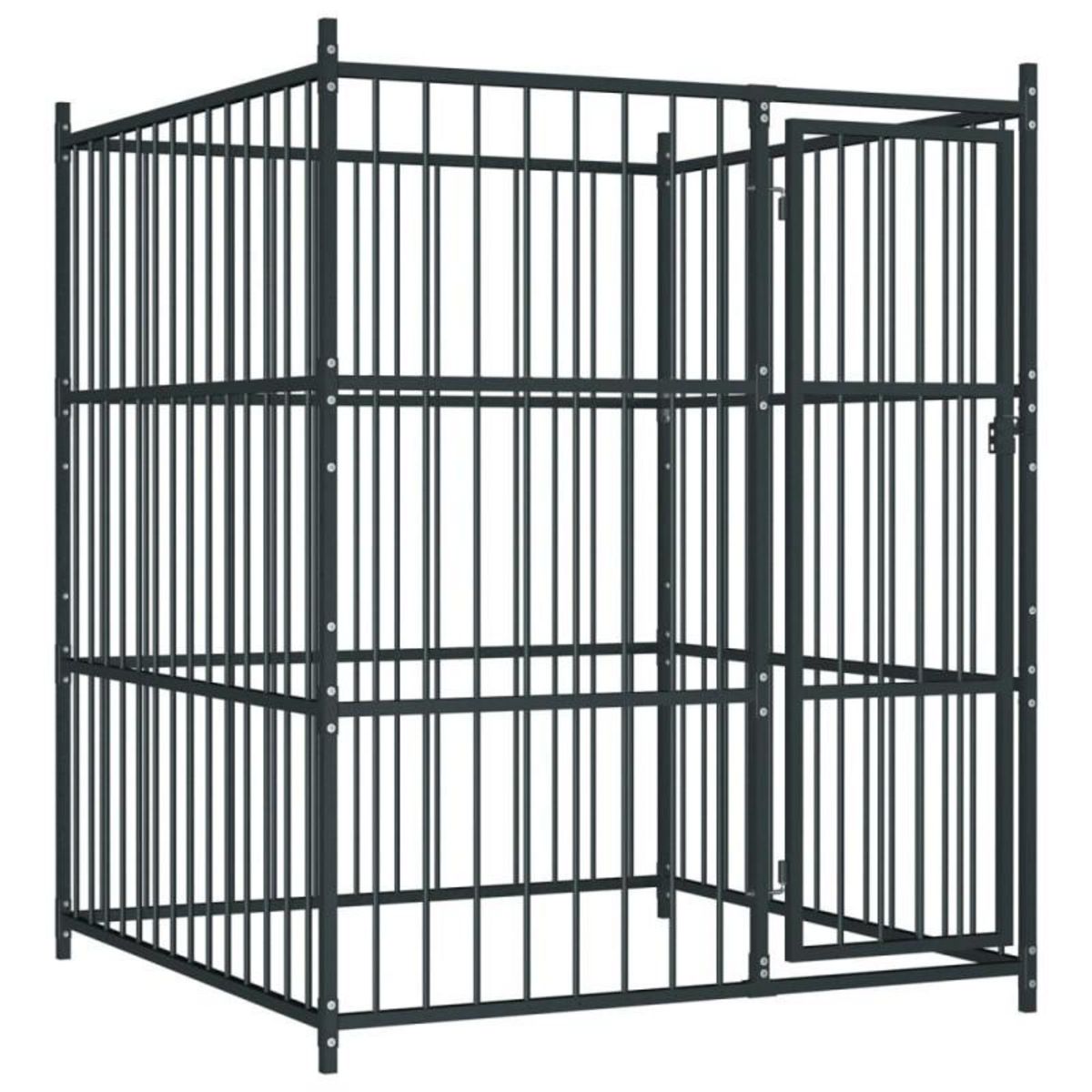 Notre chenil d'extérieur pour chiens est robuste est polyvalent. Vos chiens peuvent jouer, faire de l'exercice, s'entraîner ou simplement rester en sécurité. C'est un paradis de jeu parfait pour vos amis à fourrure ! Ce grand chenil pour chiens offre un grand espace d'exercice tandis que les murs de la barre d'acier aident à prévenir les méfaits et les accidents inattendus tout en permettant la ventilation. Grâce à la construction en acier résistante et robuste, ce chenil est durable et construit pour durer. La porte à charnières dispose d'un système de verrouillage verrouillable qui assure une sécurité supplémentaire pour vos chiens. Notre chenil est facile à assembler. Couleur : noirMatériau : AcierDimensions générales : 150 x 150 x 185 cm (L x l x H)Dimensions intérieures : 145 x 145 x 185 cm (L x l x H)Taille de la barre en métal : 25 x 25 mm (L x l)Surface du terrain : 2,25 m²Système de verrouillage à loquetConvient aux chiensL'assemblage est requisCouleur : noirMatériau : AcierDimensions générales : 150 x 150 x 185 cm (L x l x H)Dimensions intérieures : 145 x 145 x 185 cm (L x l x H)Taille de la barre en métal : 25 x 25 mm (L x l)Surface du terrain : 2,25 m²Système de verrouillage à loquetConvient aux chiensL'assemblage est requis