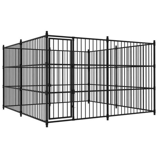 Offrez de la sécurité et du confort à votre chiot avec ce chenil d'extérieur. Cette niche polyvalente à usage intensif offre de multiples utilisations : jouer, faire de l'exercice, entraîner ou tout simplement garder votre chien en sécurité. Ce sera le paradis du jeu parfait pour vos amis à fourrure ! Ce chenil fournit un grand espace d'exercice tandis que les parois en barres d'acier aident à prévenir les dommages et les accidents inattendus tout en permettant la ventilation. Grâce à sa construction en acier robuste enduit de poudre, ce chenil de qualité est durable et construit pour durer. De plus, la porte à charnière est dotée d'un système de verrouillage verrouillable qui assure une sécurité accrue à vos chiens. Ce chenil est facile à assembler. Couleur : noirMatériau : AcierDimensions : 300 x 300 x 185 cm (L x l x H)Dimensions intérieures : 297,5 x 297,5 x 185 cm (L x l x H)Dimensions de la porte : 50 x 158,5 cm (l x H)Taille du tube en acier : 25 x 25 mm (L x l)Portail avec serrure pour une grande sécuritéConvient aux chiensCouleur : noirMatériau : AcierDimensions : 300 x 300 x 185 cm (L x l x H)Dimensions intérieures : 297,5 x 297,5 x 185 cm (L x l x H)Dimensions de la porte : 50 x 158,5 cm (l x H)Taille du tube en acier : 25 x 25 mm (L x l)Portail avec serrure pour une grande sécuritéConvient aux chiens