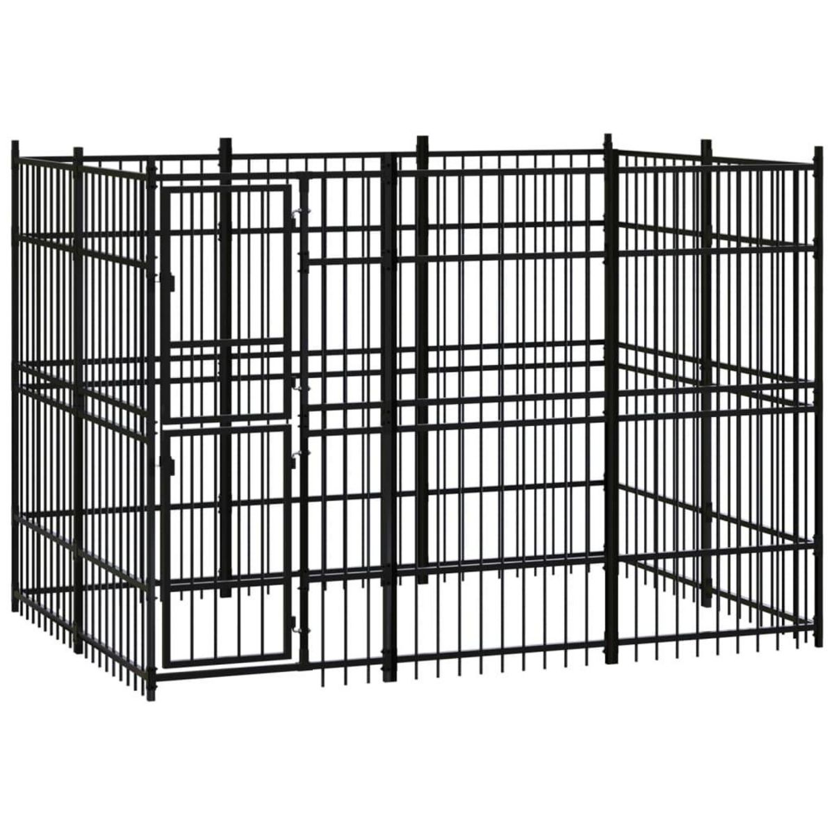 Ce chenil pour chien offre un grand espace d'exercice. Les murs en barres d'acier permettent d'eviter les mefaits et les accidents inattendus tout en permettant la ventilation. Grace a la construction robuste en acier enduit de poudre, ce chenil pour chien est durable et conçu pour durer. La porte a charnieres avec un systeme de loquet verrouillable assure une securite supplementaire a vos chiens.