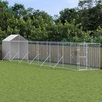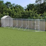 Chenil d'exterieur pour chiens avec toit argente 2x14x2,5 m