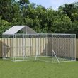 Chenil d'exterieur pour chiens avec toit argente 4x4x2,5 m