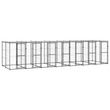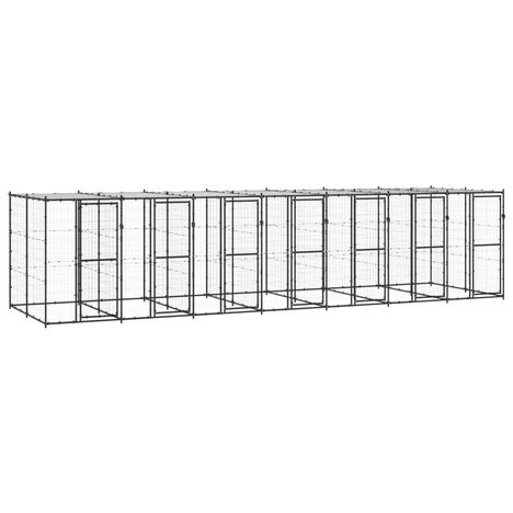 Ce chenil pour chien offre un grand espace d'exercice. La maille tout autour aide a prevenir les mefaits et les accidents inattendus tout en permettant la ventilation. Grace a la construction robuste en acier enduit de poudre, ce chenil pour chien est durable et conçu pour durer. Fabrique en PE, l'auvent superieur inclus est resistant a l'eau et aux UV, offrant une protection contre le soleil, la pluie, la neige, ainsi que d'autres conditions meteorologiques. La porte a charnieres avec un systeme de loquet verrouillable assure une securite supplementaire a vos chiens.