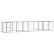 Ce chenil polyvalent pour chiens a de multiples utilisations : jeu, exercice, dressage ou tout simplement protection de votre chien. Ce sera le paradis de jeu parfait pour votre compagnon à quatre pattes ! Ce chenil pour chien offre un grand espace d'exercice. La maille tout autour aide à prévenir les méfaits et les accidents inattendus tout en permettant la ventilation. Grâce à la construction robuste en acier enduit de poudre, ce chenil pour chien est durable et conçu pour durer. Fabriqué en PE, l'auvent supérieur inclus est résistant à l'eau et aux UV, offrant une protection contre le soleil, la pluie, la neige, ainsi que d'autres conditions météorologiques. La porte à charnières avec un système de loquet verrouillable assure une sécurité supplémentaire à vos chiens. Couleur : noir et argentéMatériau : PE, acier enduit de poudreDimensions totales : 990 x 220 x 180 cm (L x l x H)Dimensions de la porte : 55,5 x 160 cm (l x H)Avec un toit et une porteSystème de verrouillage à loquetParois latérales en mailleL'assemblage est requisCouleur : noir et argentéMatériau : PE, acier enduit de poudreDimensions totales : 990 x 220 x 180 cm (L x l x H)Dimensions de la porte : 55,5 x 160 cm (l x H)Avec un toit et une porteSystème de verrouillage à loquetParois latérales en mailleL'assemblage est requis