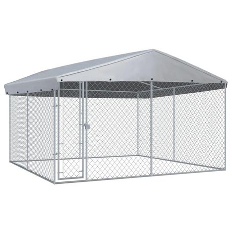 Chenil exterieur avec toit pour chiens 382x382x225 cm