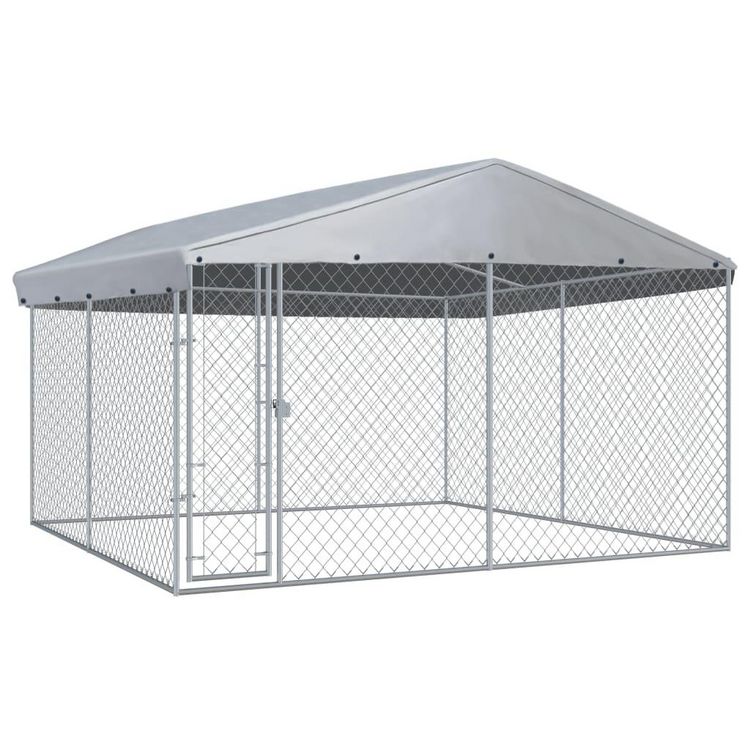 Ce grand chenil pour chiens offre amplement d'espace pour faire de l'exercice, tandis que le maillage en mailles tout autour aide a prevenir les mefaits et les accidents inattendus, tout en permettant la ventilation. Grace a la construction en acier galvanise solide et robuste, ce chenil pour chiens est durable et construit pour durer. Le toit superieur inclus, fait de 100 % polyethylene, est ignifuge et protege contre les rayons UV, offrant une protection contre le soleil, la pluie, la neige et d'autres conditions meteorologiques. La porte a charniere assure une securite supplementaire pour vos chiens grace au systeme de loquet de verrouillage. L'assemblage est facile.