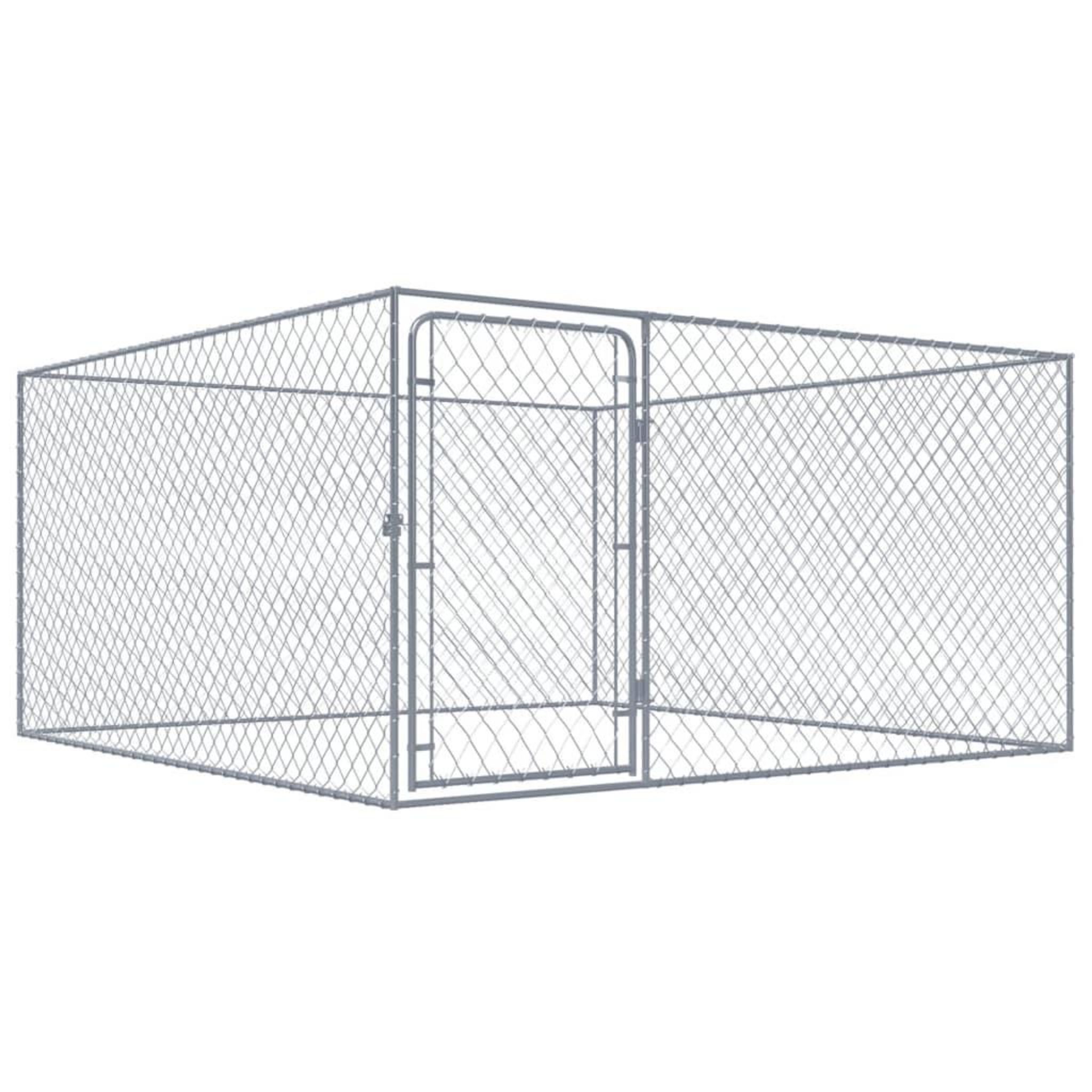 Le chenil pour chiens est fabrique en acier galvanise tres resistant, ce qui le rend durable et adapte a une utilisation en plein air. Les parois laterales en maillon de chaîne aident a prevenir les dommages et les accidents tout en laissant passer l'air. Le chenil pour chiens est equipe d'une porte a charniere et d'un systeme a verrou pour plus de securite pour vos chiens. Le chenil pour chiens est facile a assembler.