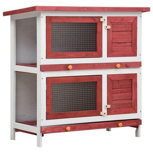 Clapier d'exterieur 4 portes Rouge Bois