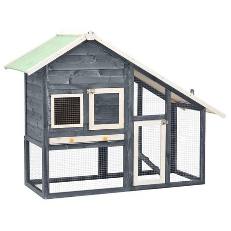 Clapier Gris et blanc 140x63x120 cm Bois de sapin massif
