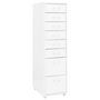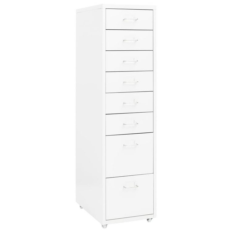 Cette armoire de bureau est fabriquee en metal, ce qui la rend durable et facile a nettoyer. Cette armoire a dossiers a 8 tiroirs et vous pouvez mettre des etiquettes de nom dans les poignees en metal, ce qui vous permet de trier proprement vos dossiers en differentes categories. Avec ses 4 roues, cette armoire est facile a deplacer. Elle conviendra a tout decor de bureau grace a son design emblematique. De plus, l'armoire est facile a nettoyer avec un chiffon humide.