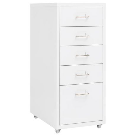 Cette armoire de bureau est fabriquee en metal, ce qui la rend durable et facile a nettoyer. Cette armoire a dossiers a 5 tiroirs et vous pouvez mettre des etiquettes de nom dans les poignees en metal, ce qui vous permet de trier proprement vos dossiers en differentes categories. Avec ses 4 roues, cette armoire est facile a deplacer. Elle conviendra a tout decor de bureau grace a son design emblematique. De plus, l'armoire est facile a nettoyer avec un chiffon humide.
