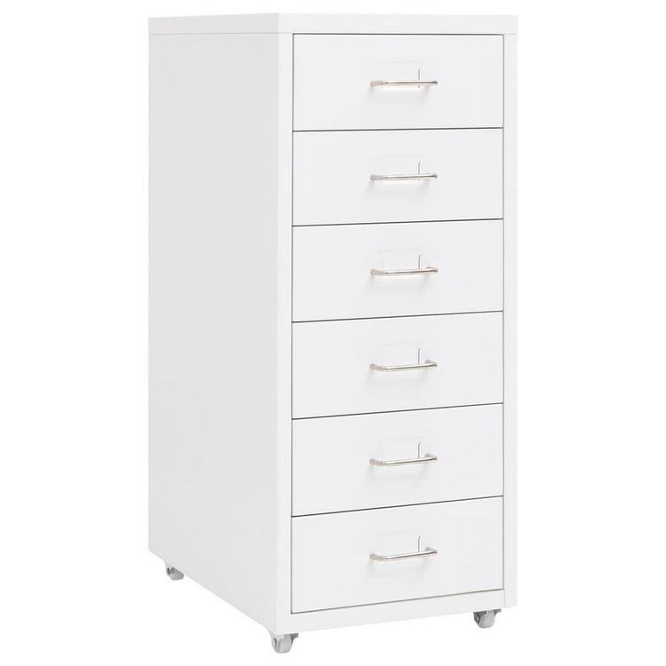 Cette armoire de bureau est fabriquee en metal, ce qui la rend durable et facile a nettoyer. Cette armoire a dossiers a 6 tiroirs et vous pouvez mettre des etiquettes de nom dans les poignees en metal, ce qui vous permet de trier proprement vos dossiers en differentes categories. Avec ses 4 roues, cette armoire est facile a deplacer. Elle conviendra a tout decor de bureau grace a son design emblematique. De plus, l'armoire est facile a nettoyer avec un chiffon humide.