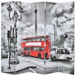 Le paravent a un cadre en bois solide et est recouvert de toile durable avec une belle impression photo monochrome representant une rue de Londres avec un bus a deux etages emblematique en rouge contrastant et ajoutera une touche de charme moderne a votre interieur. La cloison de separation de piece peut egalement etre facilement repliee pour economiser de l'espace lorsqu'elle n'est pas utilisee.