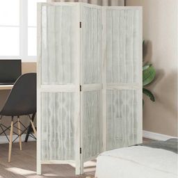 Cloison de separation 3 panneaux blanc bois de paulownia massif