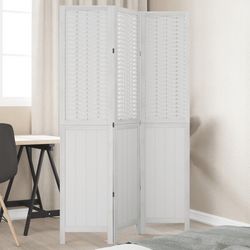 Cloison de separation 3 panneaux blanc bois de paulownia massif