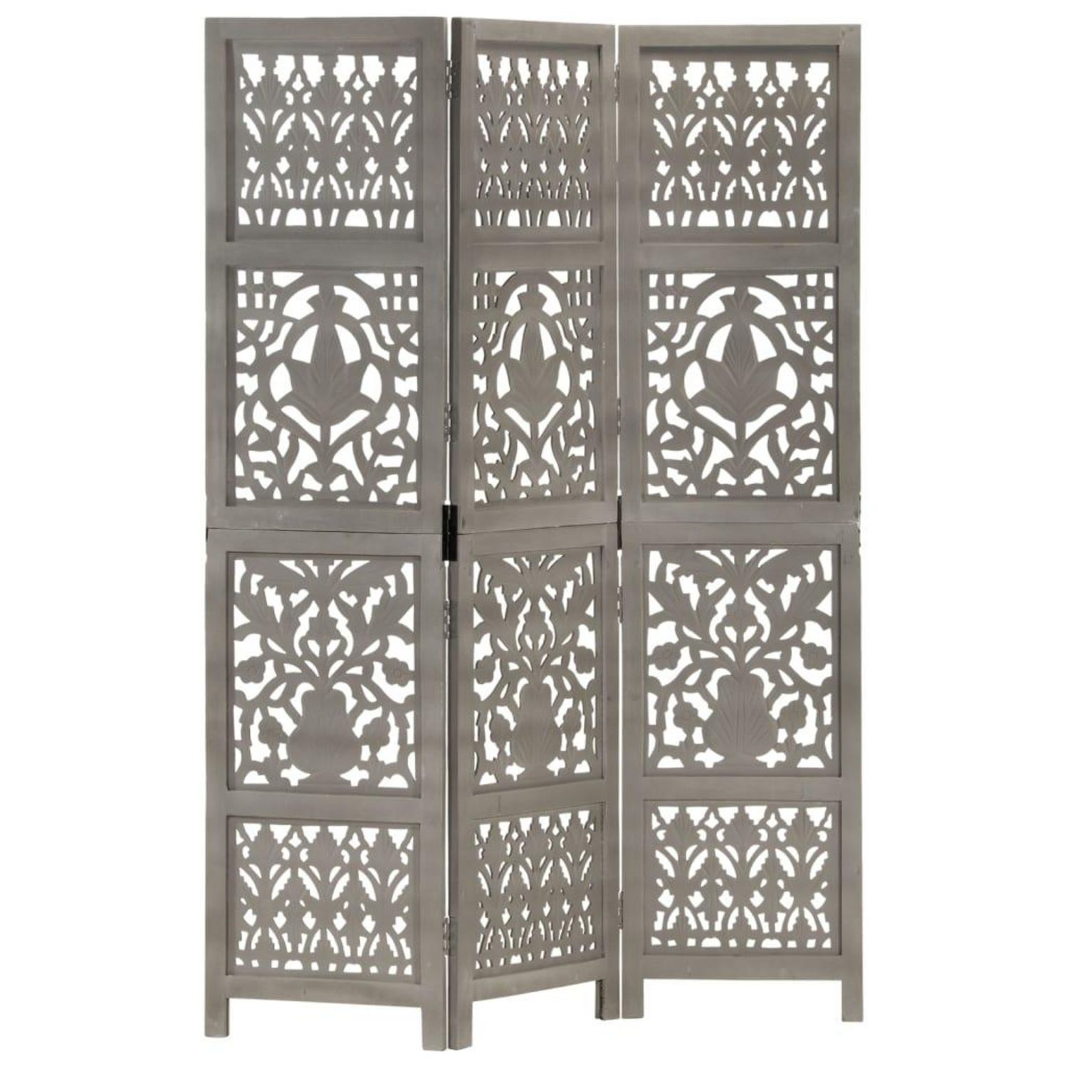 Cloison de separation 3 panneaux Gris 120x165 cm Bois manguier