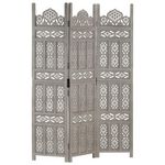 Cloison de separation 3 panneaux Gris 120x165 cm Bois manguier