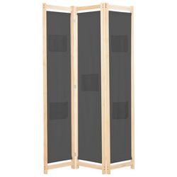 Cloison de separation 3 panneaux Gris 120x170x4 cm Tissu