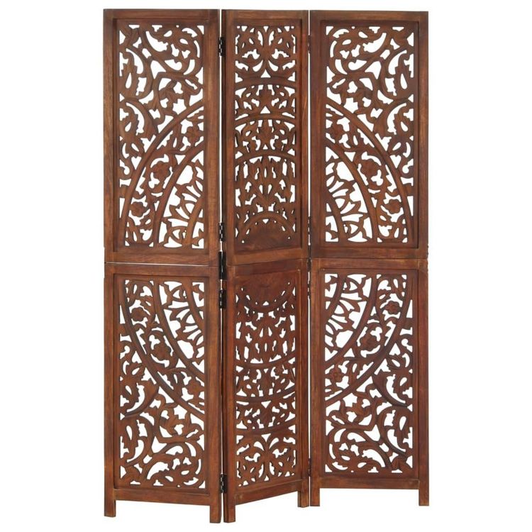 Cloison de separation 3 panneaux Marron 120x165cm Bois manguier
