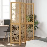 Cloison de separation 3 panneaux marron bois paulownia massif