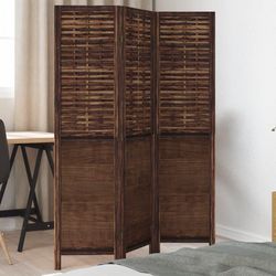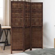 Cloison de separation 3 panneaux marron fonce paulownia massif