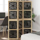 Cloison de separation 3 panneaux marron noir paulownia massif