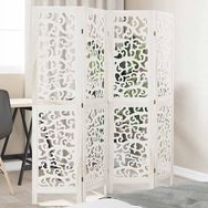 Cloison de separation 4 panneaux blanc bois de paulownia massif