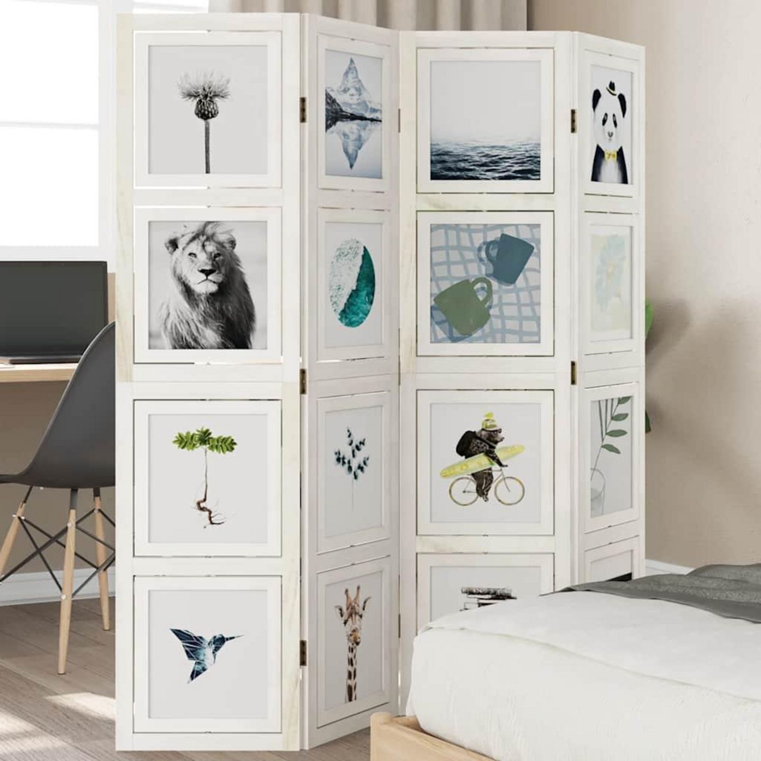 - Flexible et facile a plier : chaque cloison est reliee par 3 charnieres metalliques et les panneaux superieur et inferieur sont relies par des charnieres 2 en 1 cachees. Le panneau de separateur de piece peut donc etre facilement pliee en fonction de vos besoins pour economiser de l'espace.