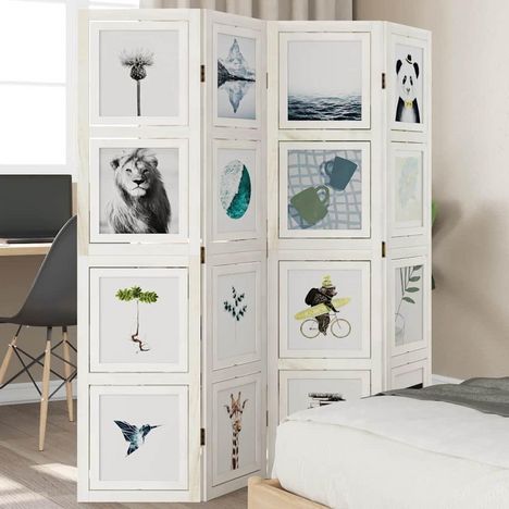 Cloison de separation 4 panneaux blanc bois de paulownia massif