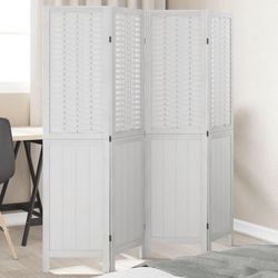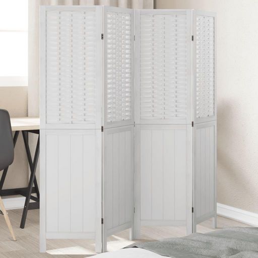 Cloison de separation 4 panneaux blanc bois de paulownia massif