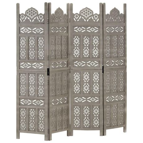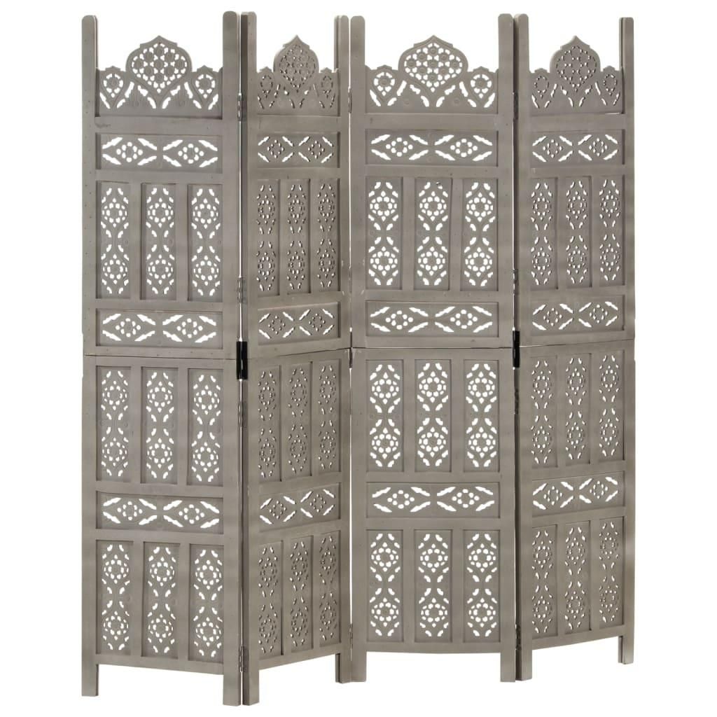 Cloison de separation 4 panneaux Gris 160x165 cm Bois manguier