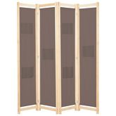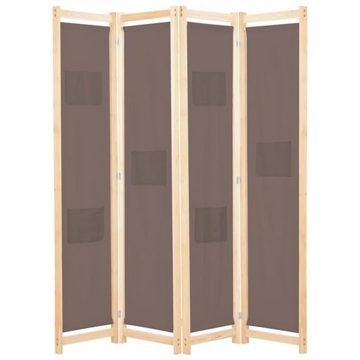 Cloison de separation 4 panneaux Marron 160x170x4 cm Tissu