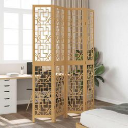 Cloison de separation 4 panneaux marron bois paulownia massif