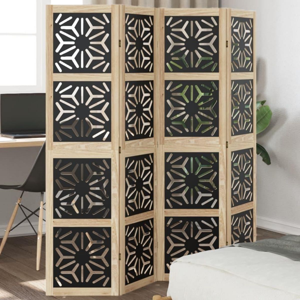 Cloison de separation 4 panneaux marron noir paulownia massif
