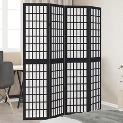 Cloison de separation 4 panneaux noir bois de paulownia massif