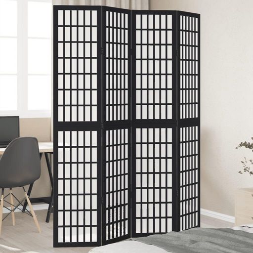 Cloison de separation 4 panneaux noir bois de paulownia massif