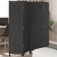 Cloison de separation 4 panneaux noir bois de paulownia massif