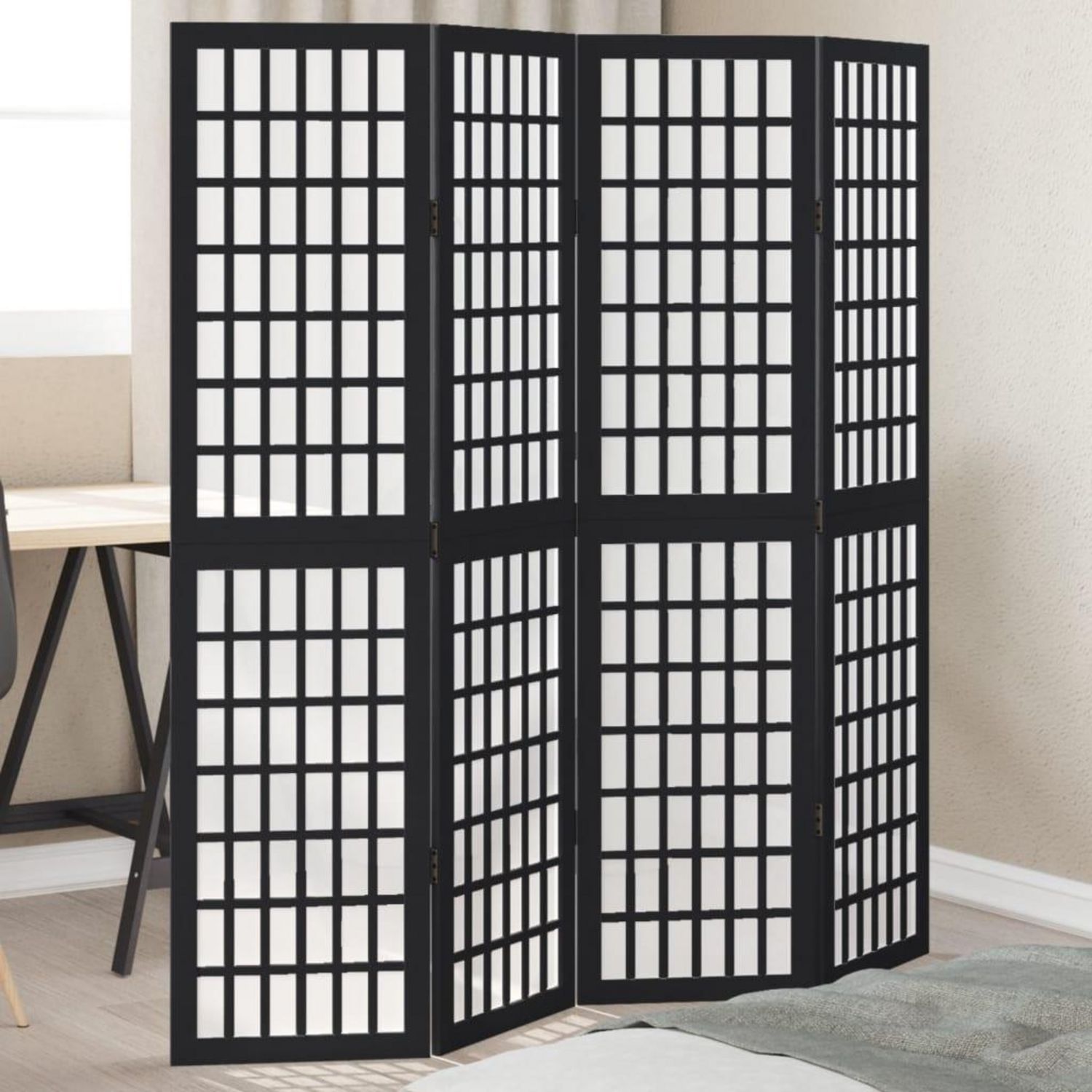 Cloison de separation 4 panneaux noir bois de paulownia massif