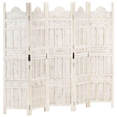Cloison de separation 5 panneaux Blanc 200x165 cm Bois manguier