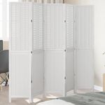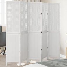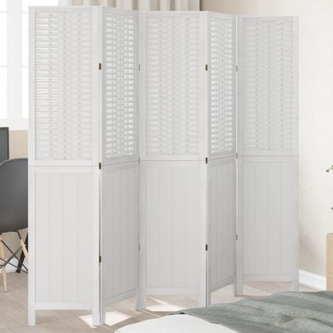 Cloison de separation 5 panneaux blanc bois de paulownia massif